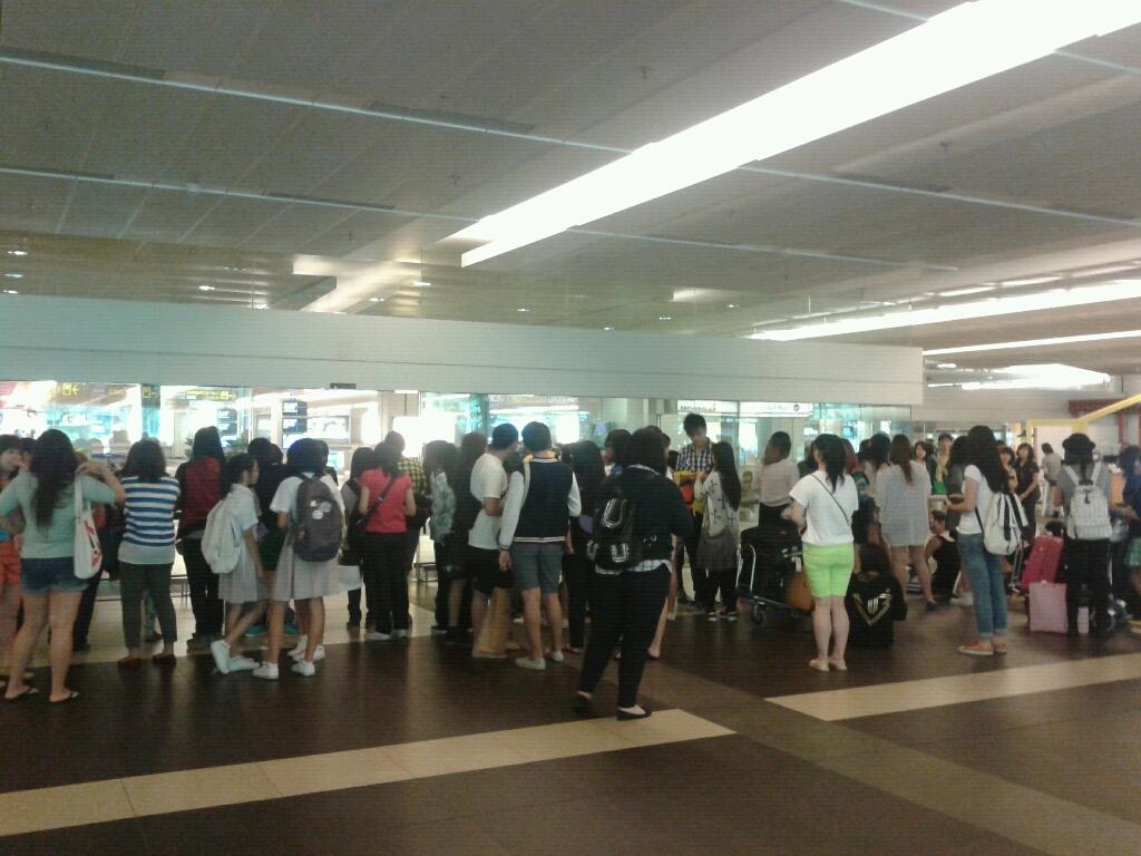 Besok paginya saya, Sitta, dan Sarah sudah siap pergi (lagi) ke Changi. Yes, setelah dapat konfirmasi dari twitter kalo BigBang sudah meninggalkan Incheon di pagi harinya, kami segera mengecek jadwal kedatangan pesawat dari Incheon menuju Singapura. Menurut jadwal di website Changi Airport, hari itu pesawat yang membawa rombongan BB akan tiba di Changi pada pukul 14.07 dan akan mendarat di terminal 2 Changi Airport. Bergegaslah kami menuju Changi setelah sarapan di hostel dan segera mengontak Kareena untuk berjumpa langsung di airport. Sebelum ke Terminal 2, kita bertiga sempet ngecek ke Terminal 3 karena ada kabar kalau Seungri akan tiba terlebih dahulu (dia ga bareng dengan personil BB yang lain karena langsung terbang dari Jepang). Tapi ketika sampai di T3 kita sempet curiga kalo beritanya bohong. Kenapa?karena T3 sepiii banget. Maksudnya yah, kalo beneran Seungri akan datang duluan, pasti ada beberapa VIP yang nungguin di bandara. Tapi ini beneran ngga ada tanda-tanda apapun. Akhirnya setelah menunggu tanpa ada kejelasan, kita langsung pindah ke T2. Tidak seperti di T3 yang sepi, kali ini kami sempat melihat beberapa VIP yang bergerombol membawa kamera SLR dan juga slogan bertuliskan Thank You BigBang di T2 ini. Semakin lama T2 semakin ramai didatangi oleh VIP yang udah nunggu. Di depan pintu keluar dekat belt 36 kami sudah siap menyambut kedatangan BigBang dan ternyata ada perubahan jadwal, kalau dari layar informasi yang terpampang di T2 itu, pesawat Singapore Airlines yang membawa BB ternyata dijadwalkan maju lebih cepat tibanya dibanding jadwal semula yang tiba jam 14.07. Kami mulai gelisah dan tidak sabar menunggu kedatangan mereka.